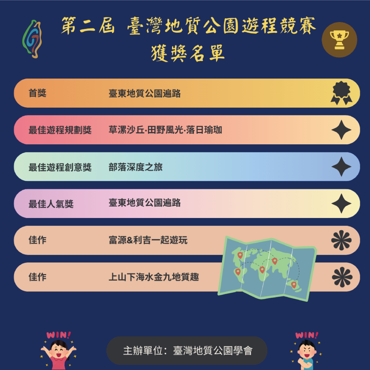 [公告]第二屆臺灣地質公園遊程競賽獲獎名單,恭喜獲獎。