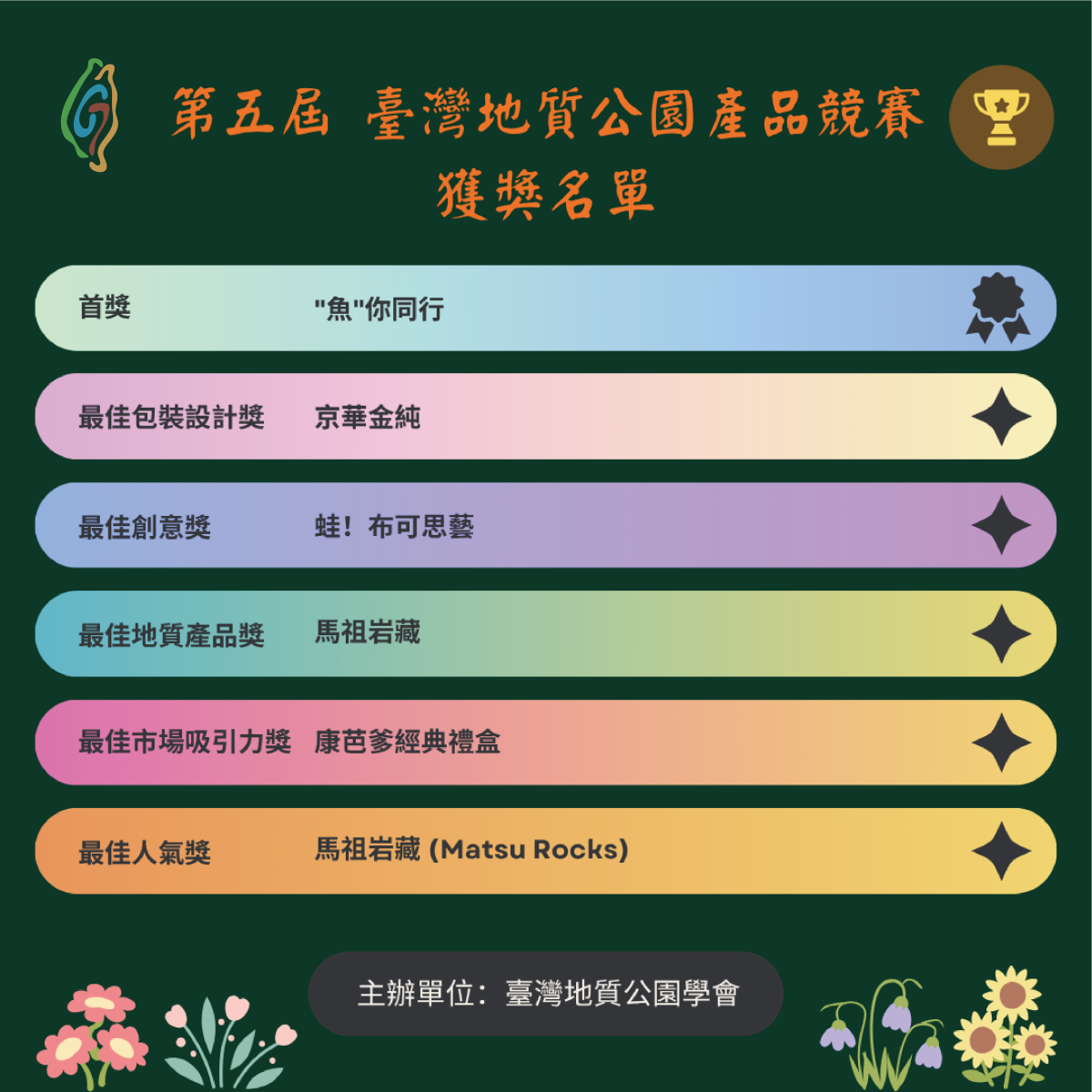 [公告]第五屆臺灣地質公園產品競賽獲獎名單,恭喜獲獎。